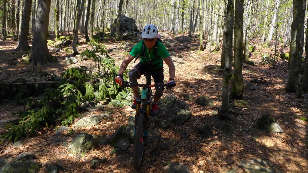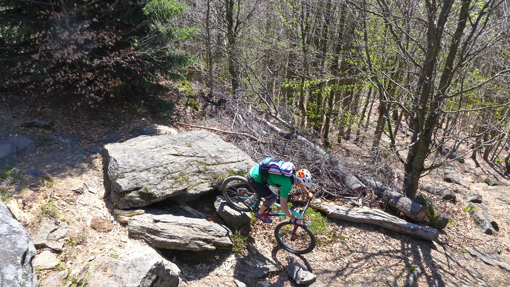 Endlich haben Sascha und ich es geschafft gemeinsam wieder eine Tour, na ja es waren eigentlich zwei am Stück, im Bayerischen Wald zu fahren. Danke Sascha fürs wie immer perfekte Guiding und die Fotos. Die Trails rund um Bernried und Rauher Kulm sind schon aller erste Sahne. Die Region zeigt mal wieder, dass es nicht immer Hochalpin sein muss, um seinen Spaß an langen, technisch fordernden aber auch flowigen Trails zu haben. Der Rock Garden am Hirschenstein ist ja schon lange kein Geheimtipp mehr…aber sucht ruhig die wirkliche Herausforderung, die 3 Felsen der Verzweiflung. Das es so eine technische Herausforderung in dieser Region gibt, vermuteten wir schon lange. Jetzt haben wir sie und manch einer hat den ersten Felsen schon bezwungen. Ich war diesmal leider noch nicht so weit um den Mut zu fassen. Wer weiß hat sicher sein Gutes.