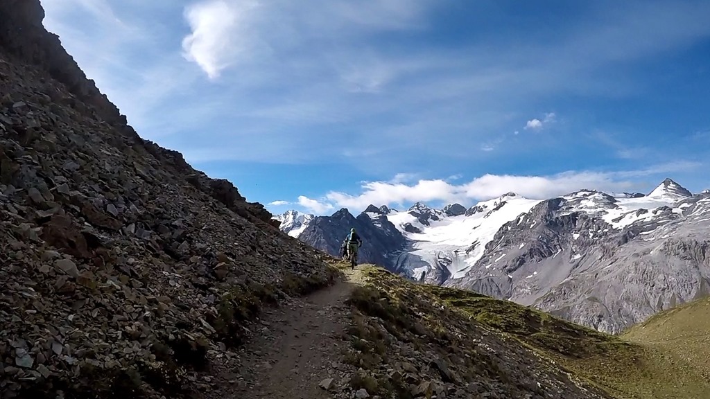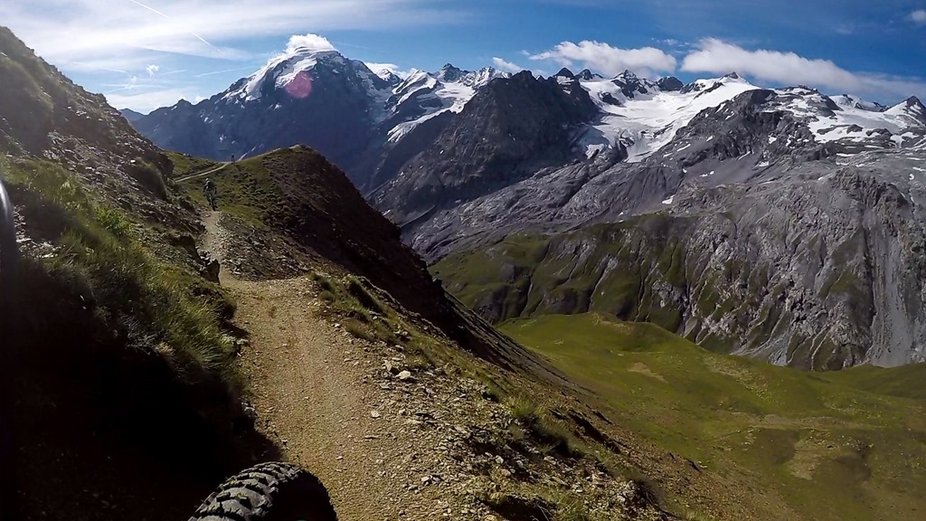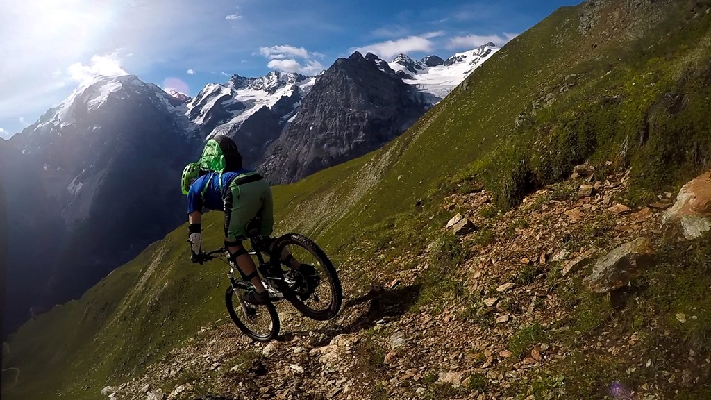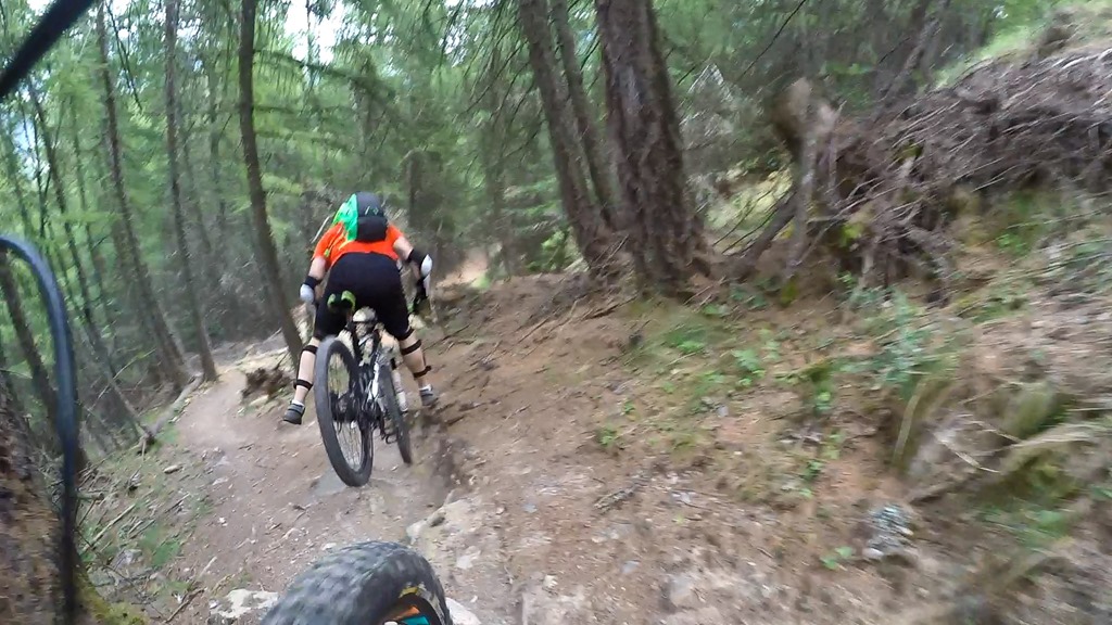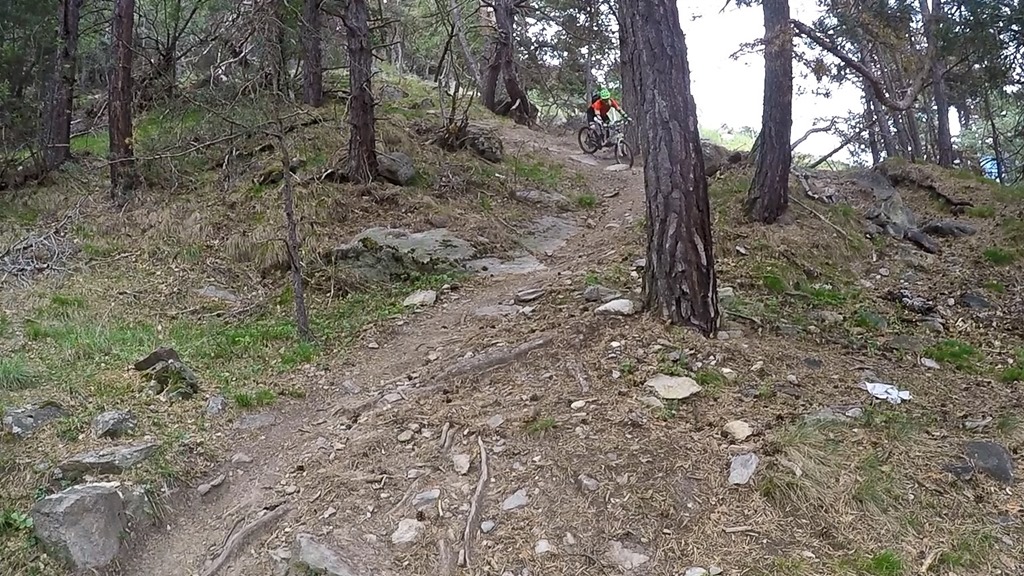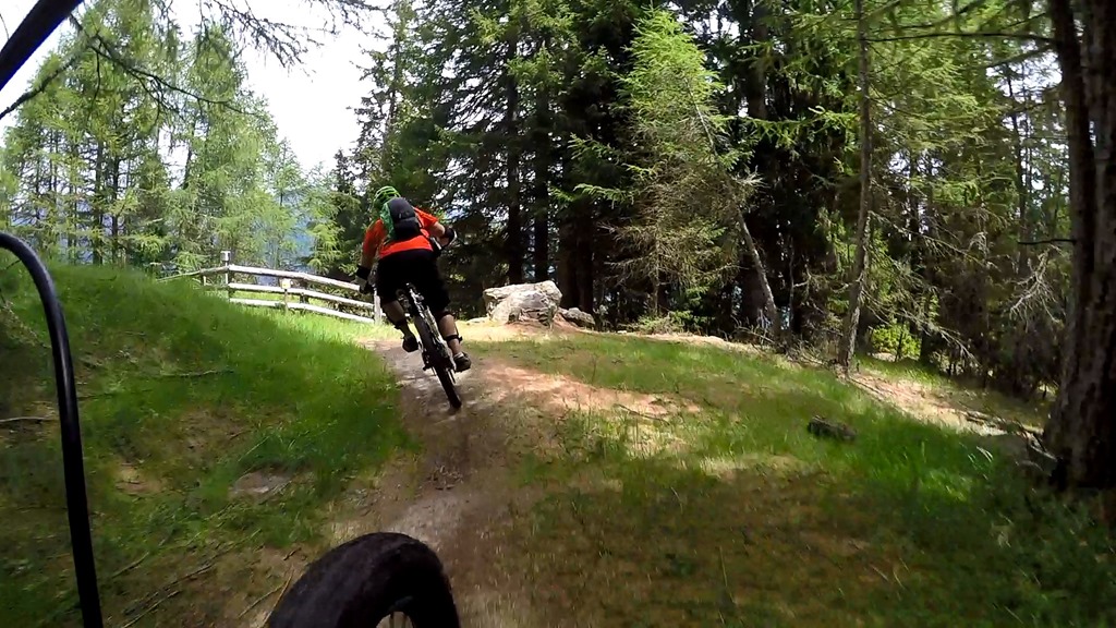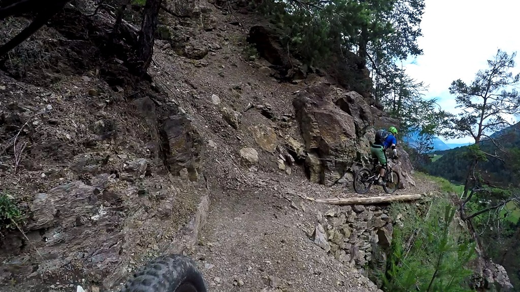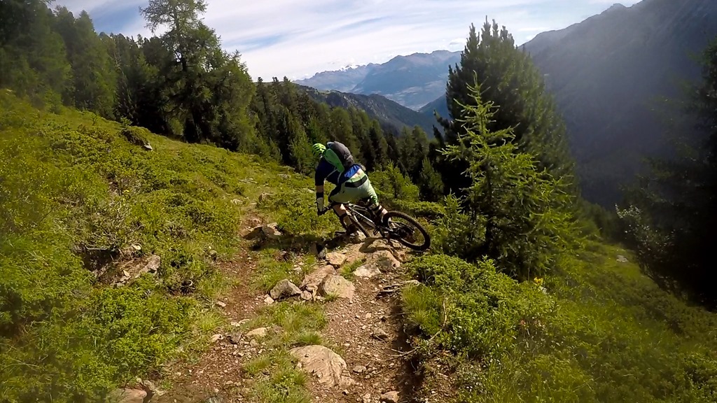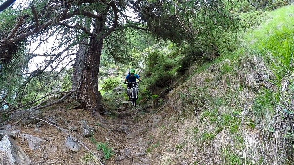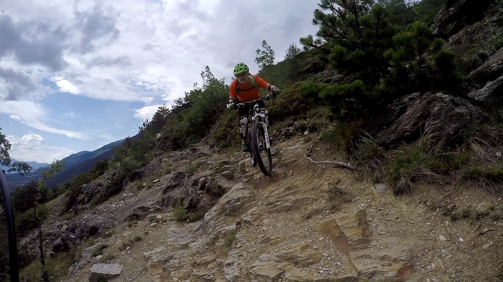 Den Rest vom Juni verbrachten wir wieder häufiger im Bayerischen Wald bis es dann Anfang Juli für ein paar Tage wieder ins Vinschgau ging. Sascha verbrachte dort seinen Sommerurlaub. Alleine lassen war nicht. Nach dem er sich an einem seiner Ersten Tage voll verausgabt hatte weil Trail Lost Angst ihn führte. Ergo Scouting und die nächsten drei Touren gingen dann auf meine Kappe. Natürlich in Absprache mit dem Master Scout. Fünf Tage – fünf Touren. Der Anfang machte gleich ein Double Trail (Tarscher/Tschilli). Zuerst rauf auf die Tarscher Alm (mit Lift Support) und den den Tarscher Trail wieder runter um gleich im Anschluss auf der anderen Seite hoch zu St. Martin zu radeln für den Tschilli Trail mit der linken Abschluss Variante. Dann wieder ein Höhepunkt der Verrücktheit. Trotz der Hinweise 1000 Stufen tragen, konnte ich Sascha nicht davon abhalten den 24er und eine eher seltenere Variante der Südseite bei Naturns zu wählen (hier bewusst auch keinen Link den diese Variante bleibt unter uns). Besprochen getan und das k.o. für diesen Tag. Aber schön war es. Der Nachmittag war dann Pause und Relaxen und natürlich Bike pflegen. Der nächste Tag sollte dann auch ein wenig Erholung bieten und wir entschieden uns zum Passo Stelvio shutteln zu lassen und in einer kleinen Gruppe den Goldsee Trail in der Kombination Goldsee – Bim Bam ab zu fahren. Über diese Tour gibt es genügend Informationsmaterial daher auch kein Link von mir. Ganz witzig war dann der Bike Tausch mit dem Guide für das untere drittel der Tour. Das Propain Tyee das der Guide gefahren hat hätte dringend gewartet werden müssen. Ob die ausgeschlagenen Lager und die maroden Bremsen wirklich nur an der Wartung lagen kann ich nicht beurteilen. Jedoch eines war sicher ich war froh unten wieder auf meinem Fritzz zu sitzen, auch wenn ich damit dem Guide sein Grinsen nehmen musste. Nachdem der Shuttle Tag dann doch ehr Erholung war entschlossen wir uns auf die andere Seite uns zu begeben und Meran 2000 mit seinen Stoanernen Mandln aufzumachen. Diesmal auch mit Lift Unterstützung. Ich finde ein echtes must ride in der Region. Nicht unbedingt wegen der Trail Schwierigkeit (S2-3) sondern wegen der Natur und den Mandln. Unser Abschiedstour für war dann eine auch nicht veröffentlichte kurze Naturns Variante.