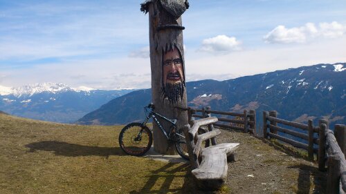 Von Naturns zum Meraner Hõhenweg. Dann den 24er Wanderweg mit Klettersteig und 1Std. Tragen. Danach flowiger super Trail (6er Wanderweg – der für Radler verboten ist, aber nicht bei diesem Wetter 🙂 da wandert eh keiner) bis nach Naturns.